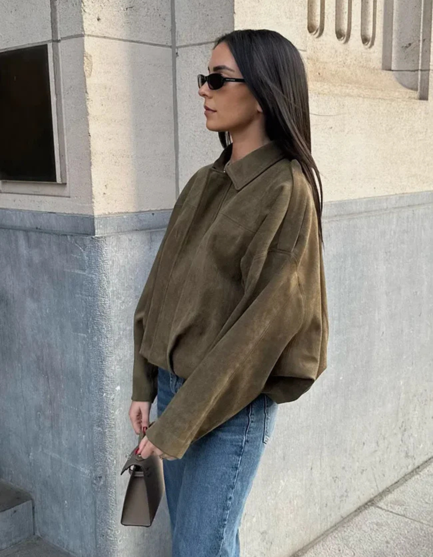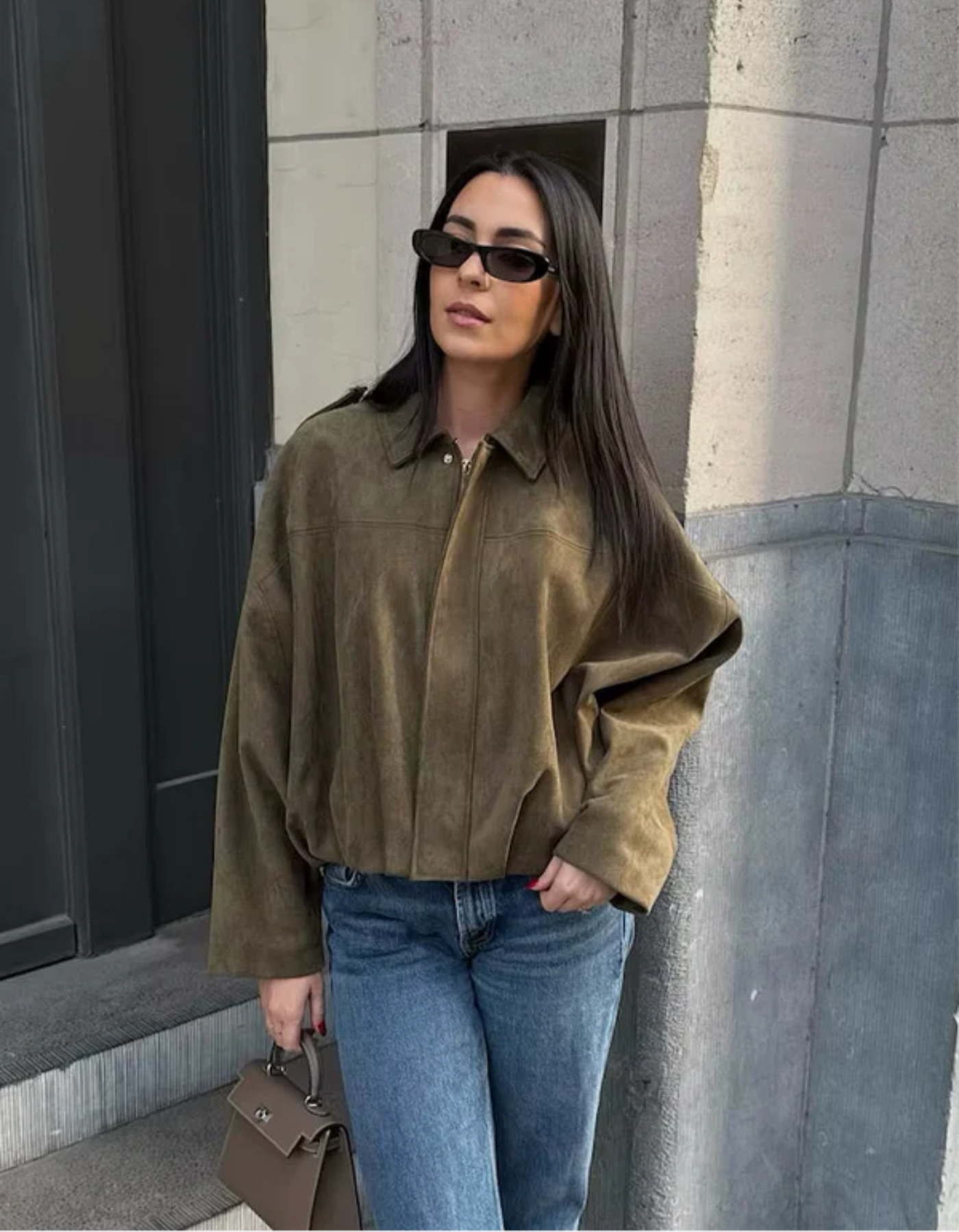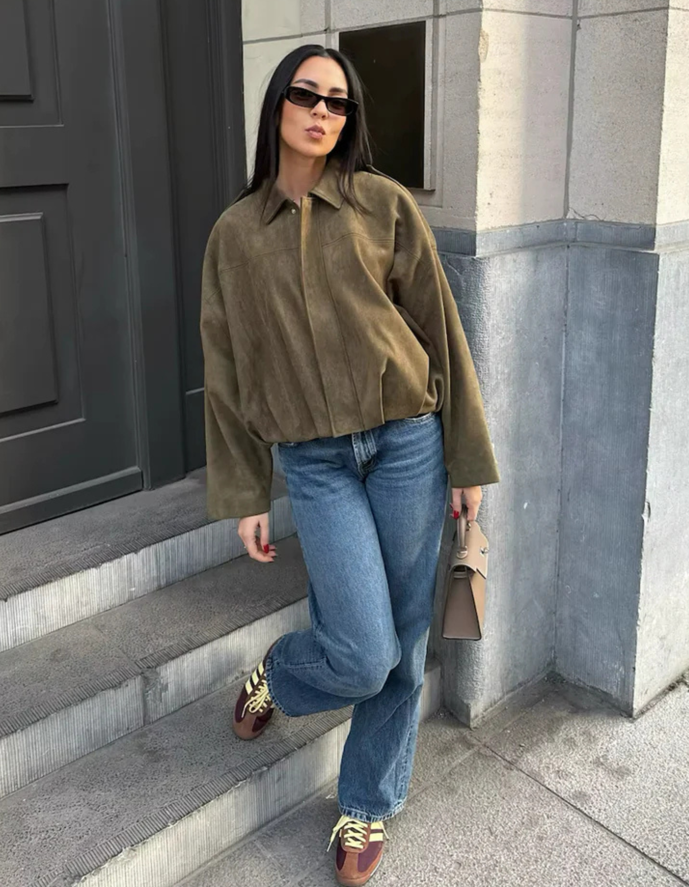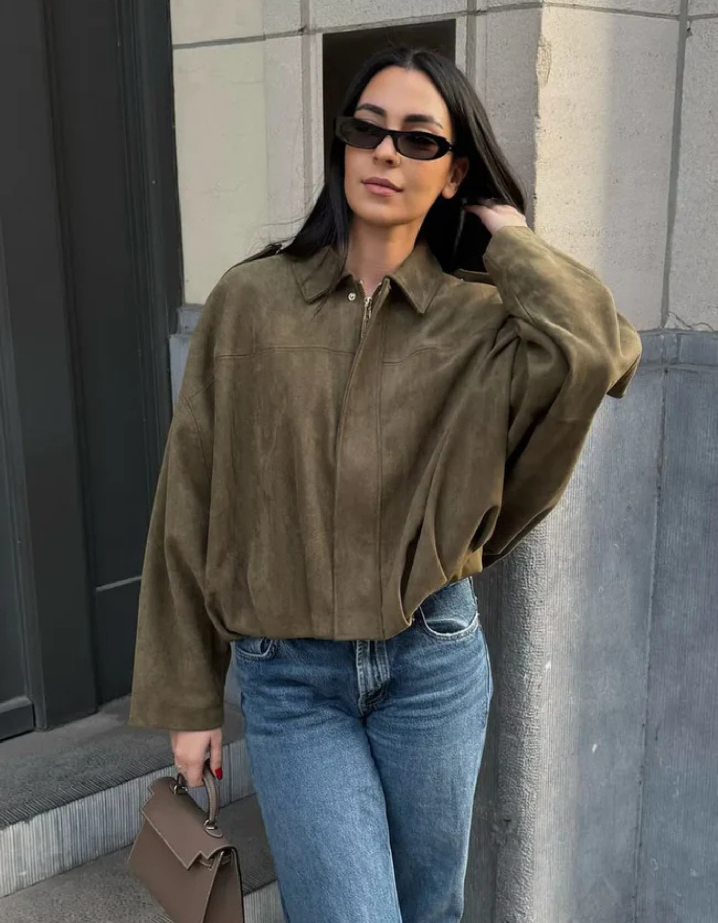 Alanna – Krótka kurtka z zamszu – Przesadny detal z guzikami