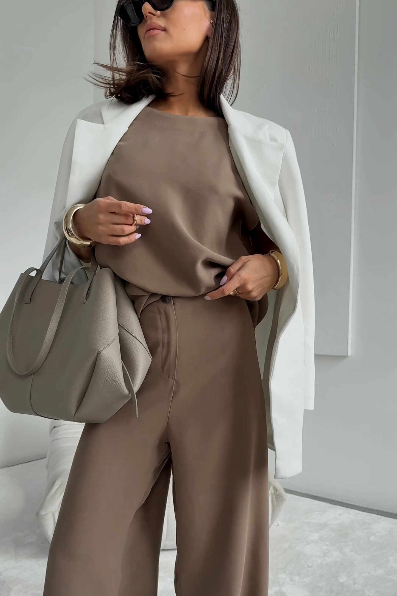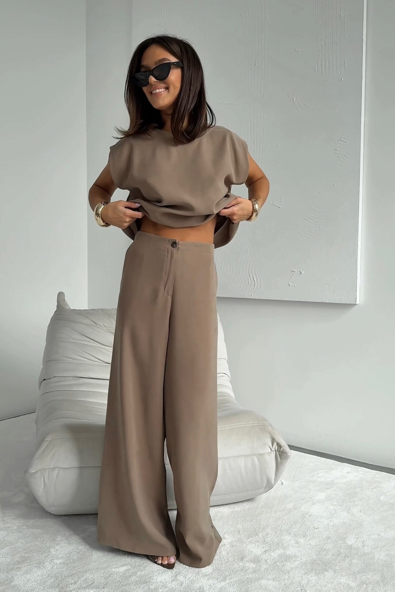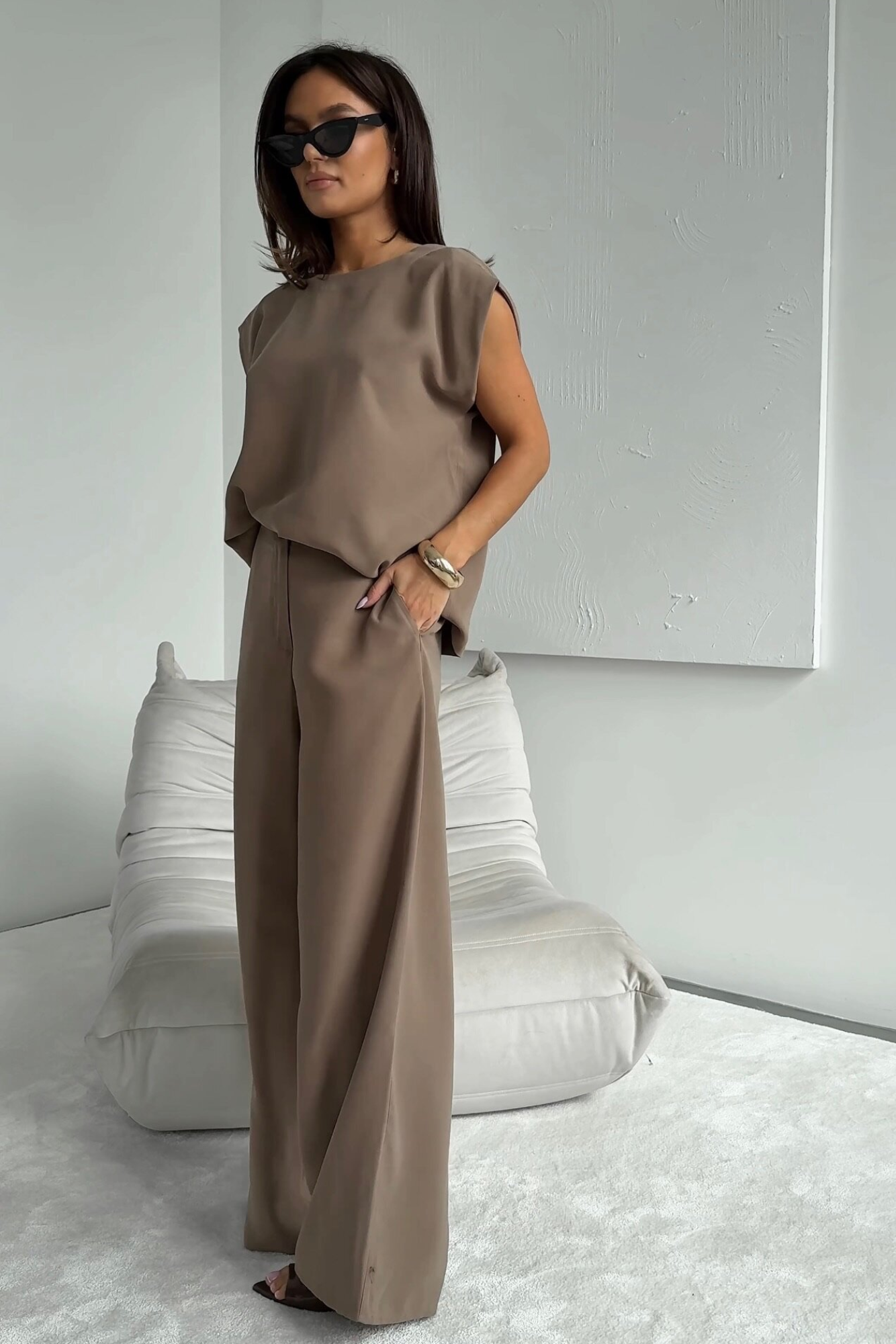Fayenne – Minimalistyczny krój – Zestaw z szerokimi nogawkami