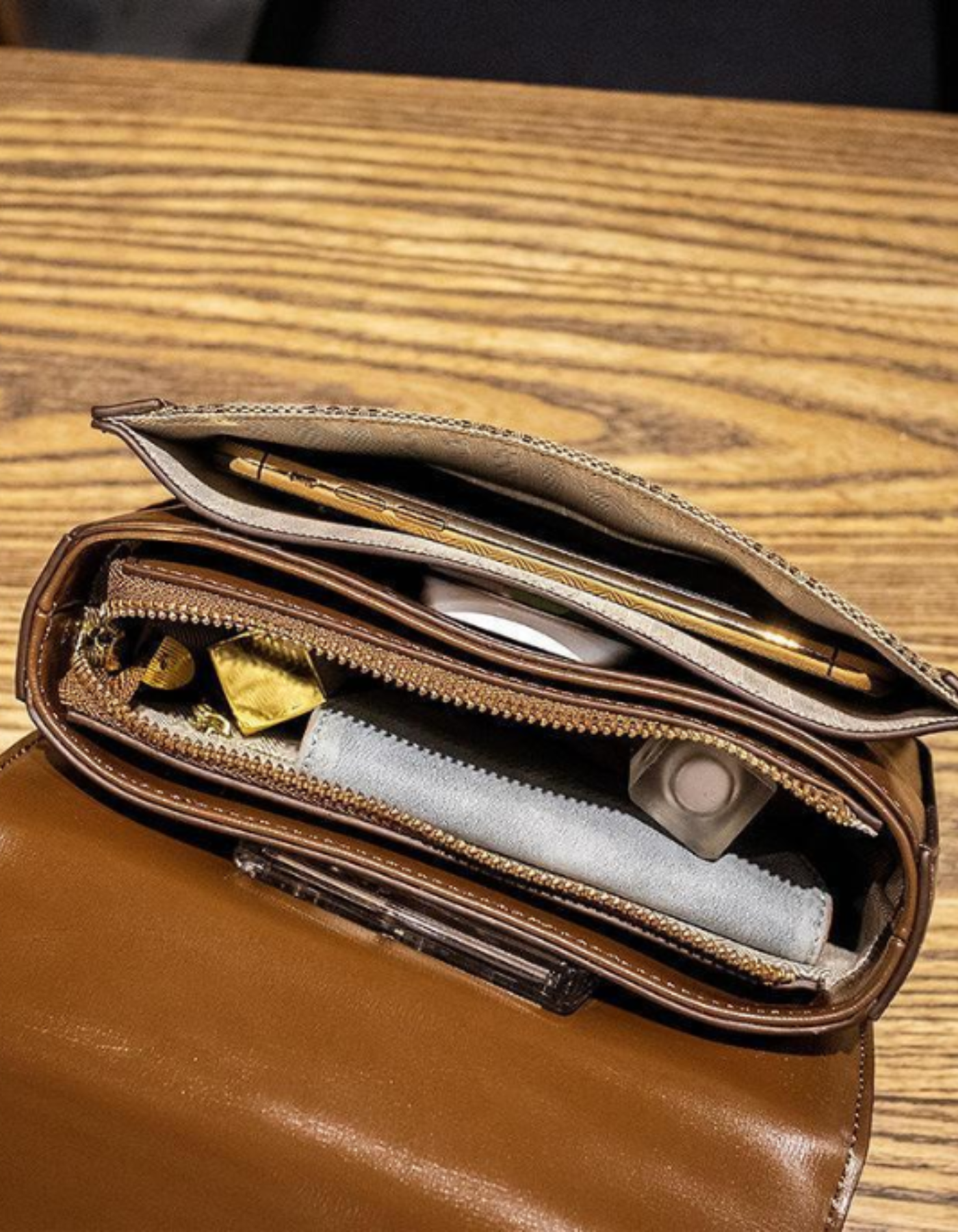 - Zapięcie na złoty zatrzask podkreśla eleganckie i bezpieczne wykończenie