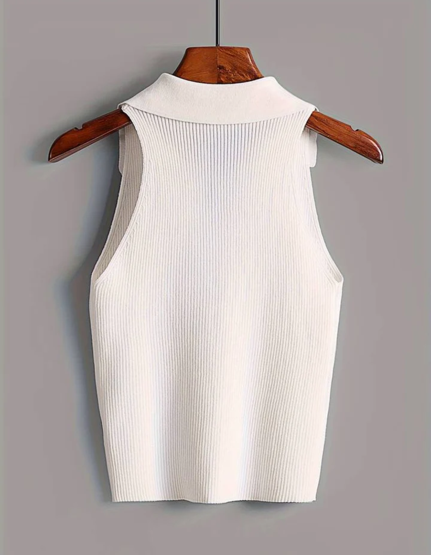 Bluzka polo Lara to świeże spojrzenie na klasyczny fason. Prążkowana struktura i stylowy kontrastowy kołnierzyk w wersji bez rękawów tworzą dopasowaną, podkreślającą sylwetkę propozycję – idealną zarówno na codzienne, jak i bardziej eleganckie okazje.