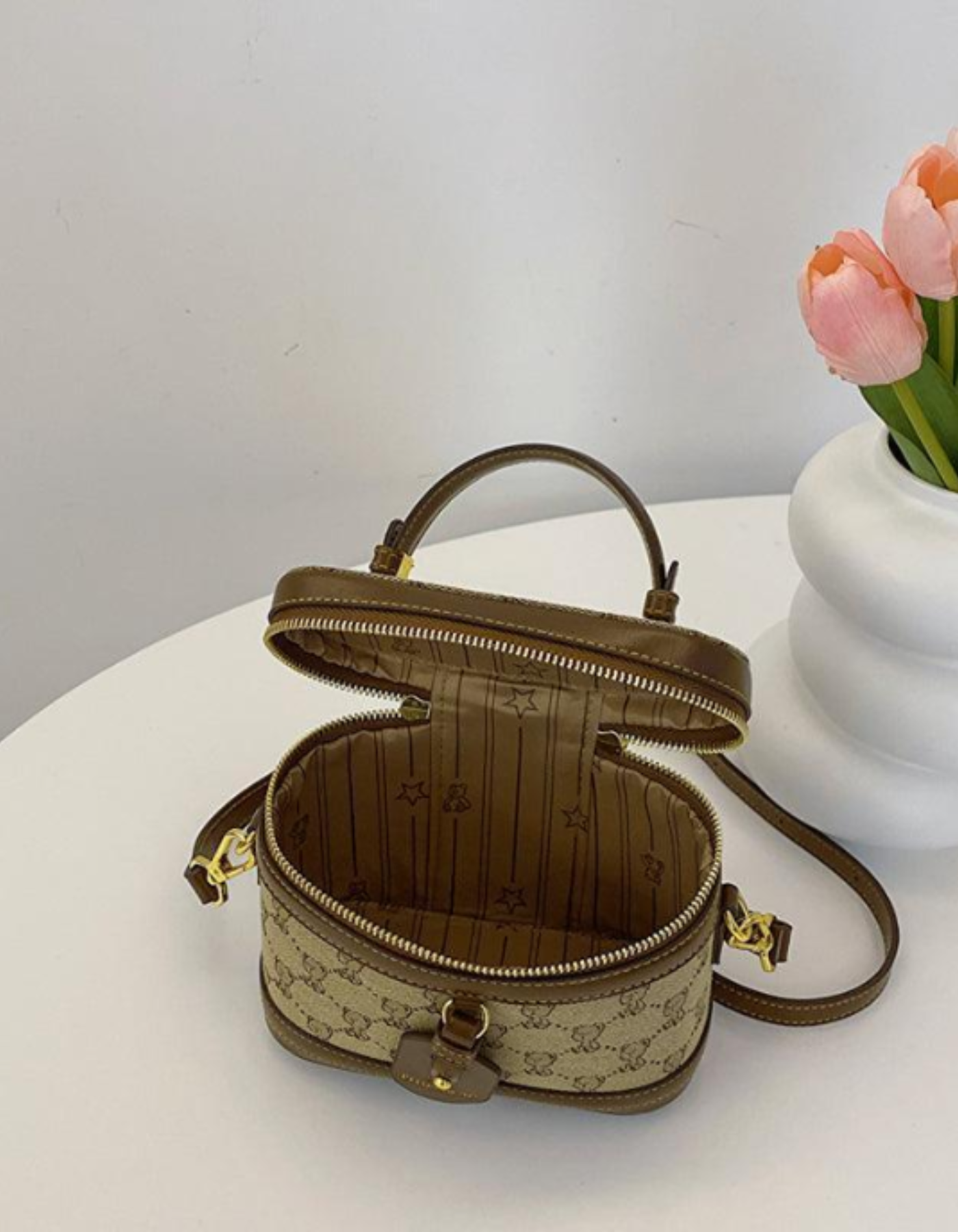 - Wzór monogramu nadaje całości luksusowego, charakterystycznego wyglądu