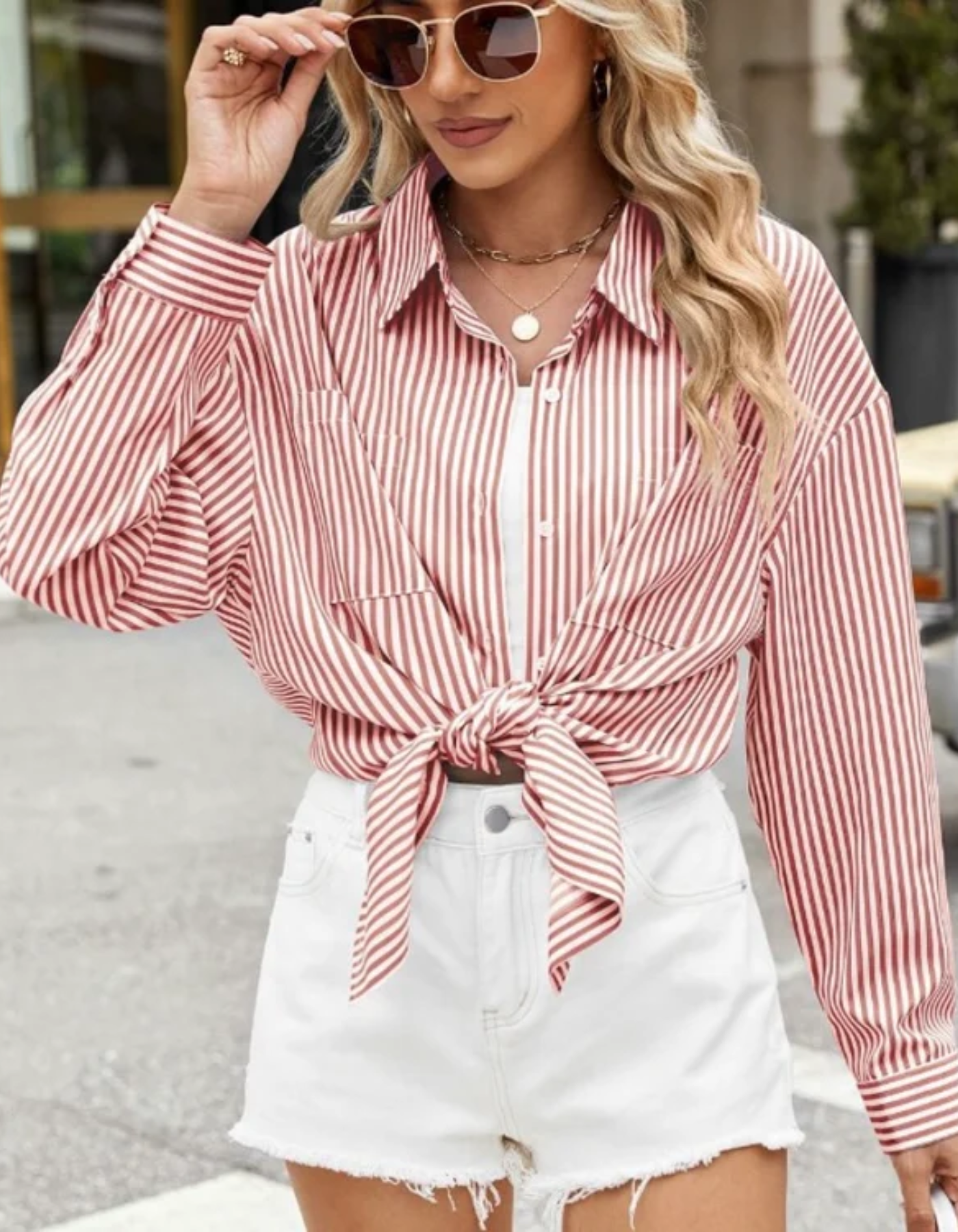 Wskazówka stylizacyjna: Połącz z jeansowymi szortami lub zawiąż w talii, aby stworzyć swobodny, stylowy look.