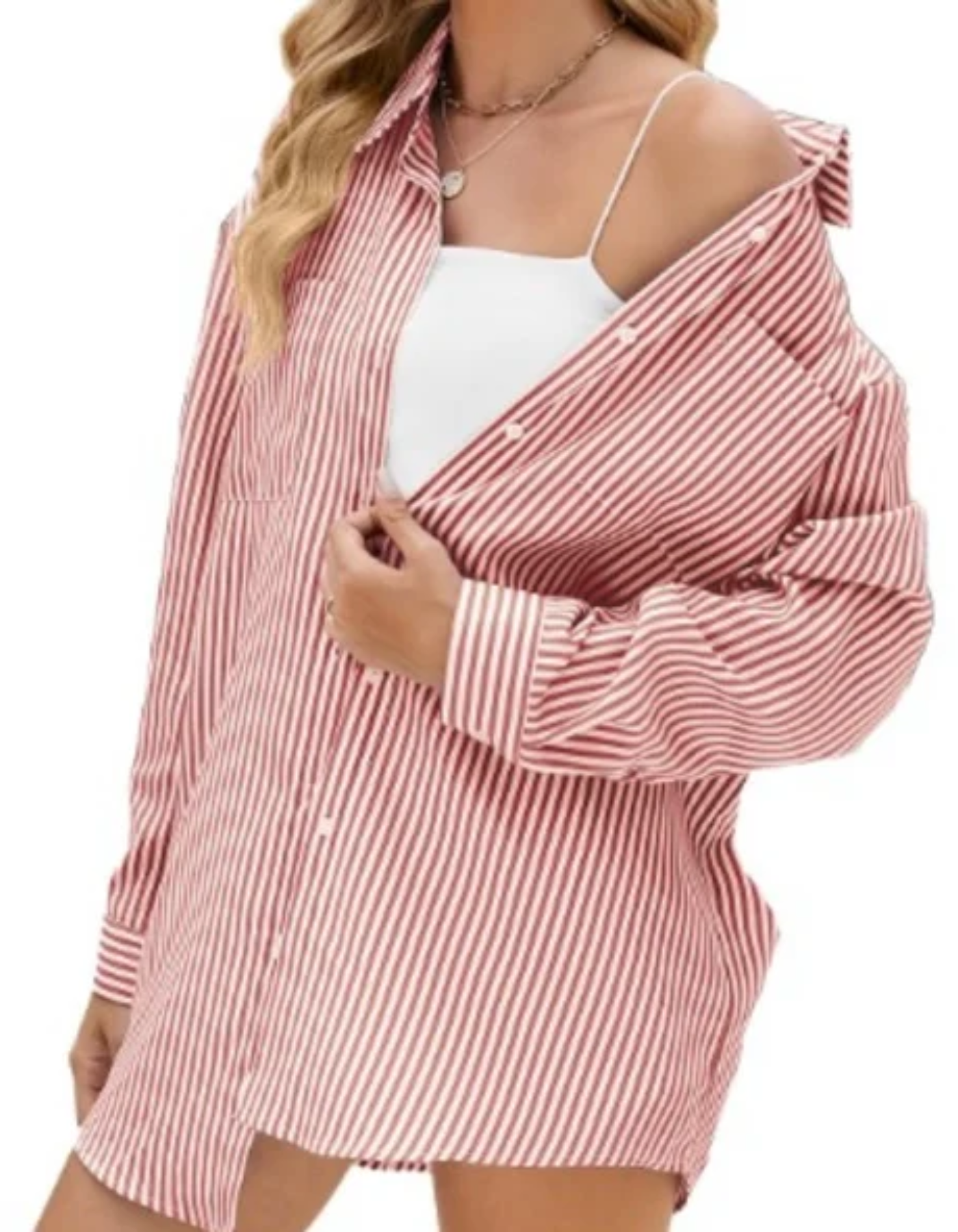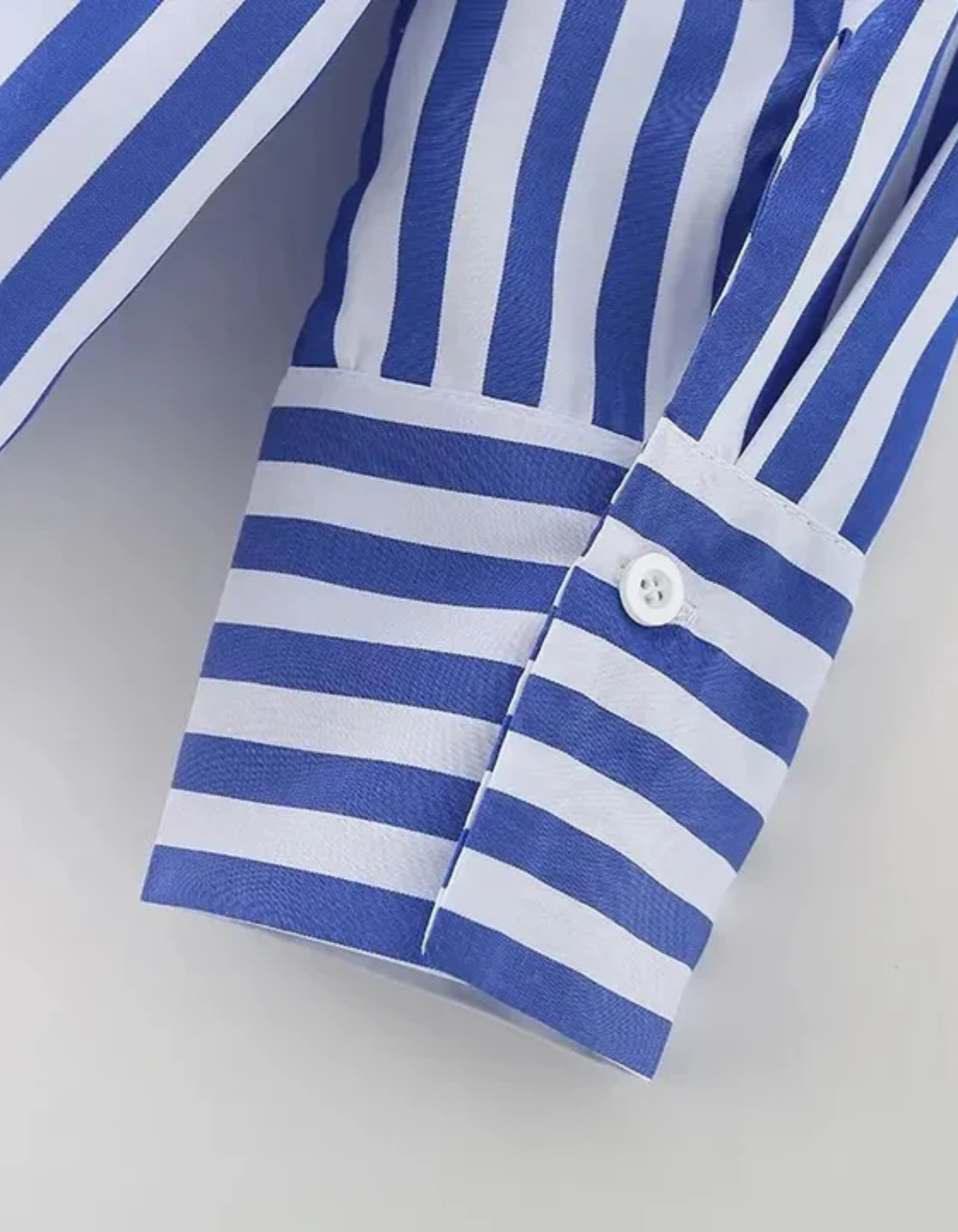 Dodaj odrobinę swobodnej elegancji do swojej garderoby z koszulą w paski Valentina. Ten luźny, oversize'owy model to idealna baza do stylizacji typu „effortless chic” – klasyczne paski i wszechstronny krój świetnie uzupełnią każdą codzienną stylizację.