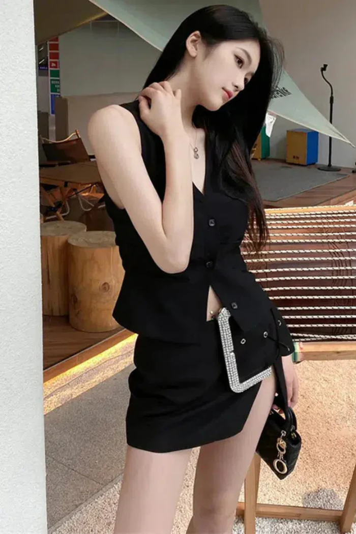 Zeno – Detal z kryształową klamrą – Mini spódniczka z wysokim rozcięciem